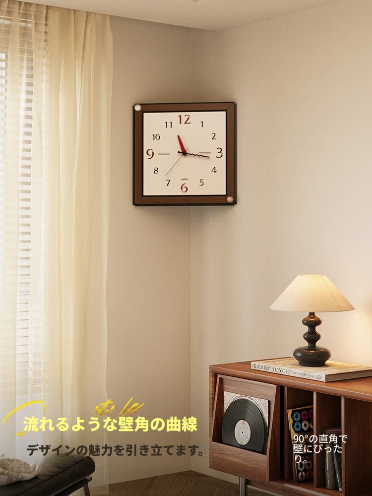 美世达デュアルフェイスコーナークロック - おしゃれでシンプルなモダンデザイン、リビングにぴったりな創造的なコーナー時計。どんなインテリアにもマッチし、時間をスタイリッシュに演出します!