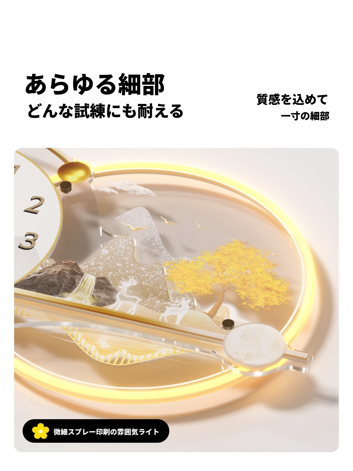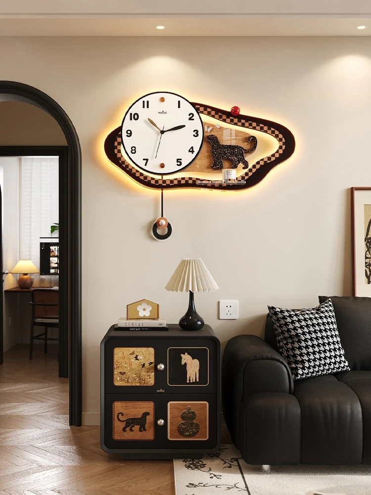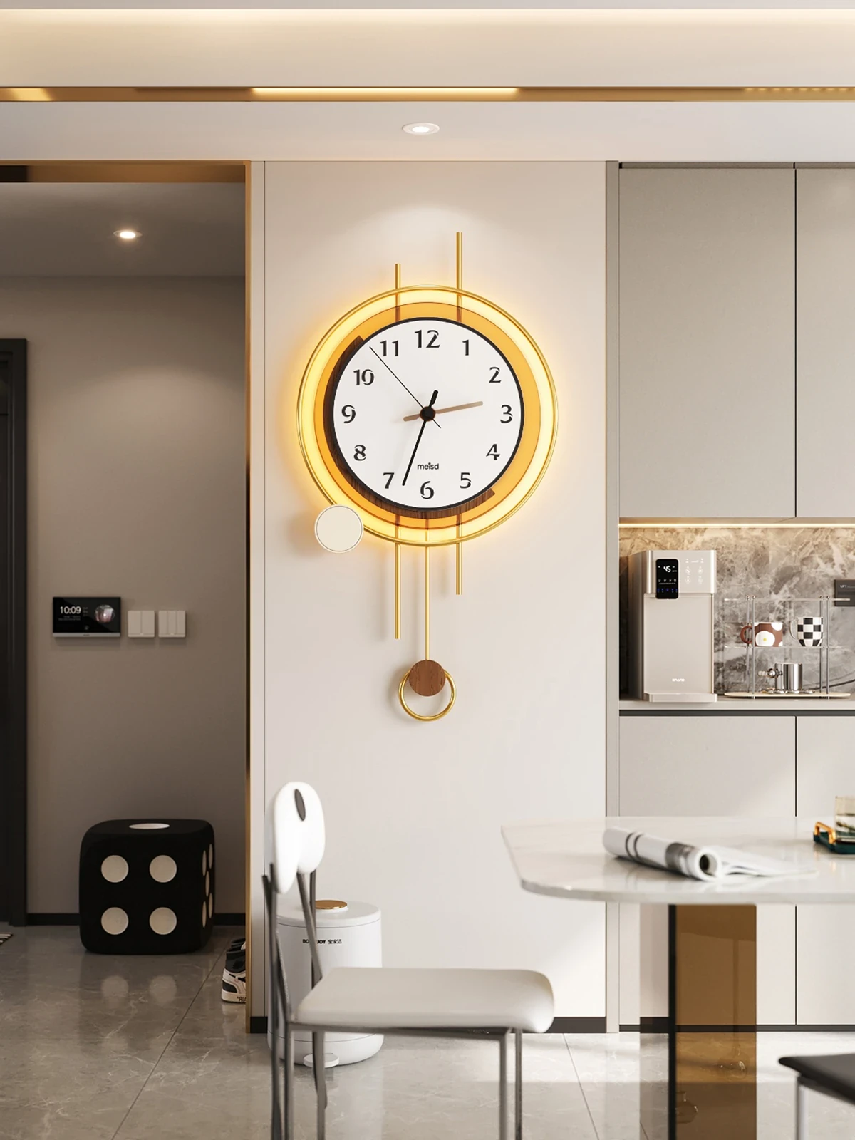 美世达2025年新作!シンプルでアートなデザインの壁掛け時計。高級感溢れるリビングにぴったりの創造的なインテリア。おしゃれな壁灯付きで、空間を一層引き立てます!