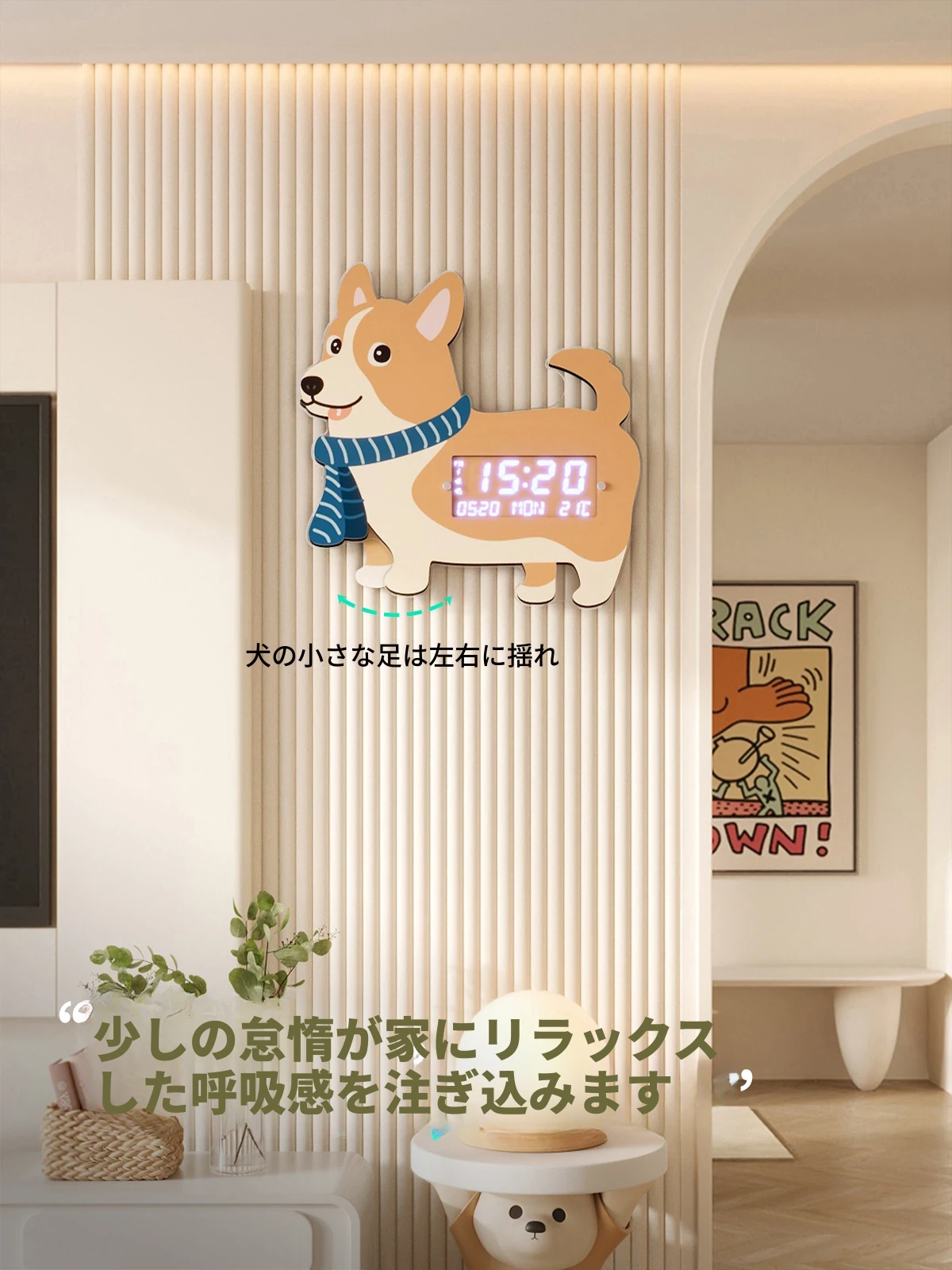 美世达コーギーリビング掛け時計2024年新モデル!万年カレンダー付きデジタル表示、インスタ映えするかわいい犬デザインの壁掛け時計。お部屋を明るく彩る必見アイテム!