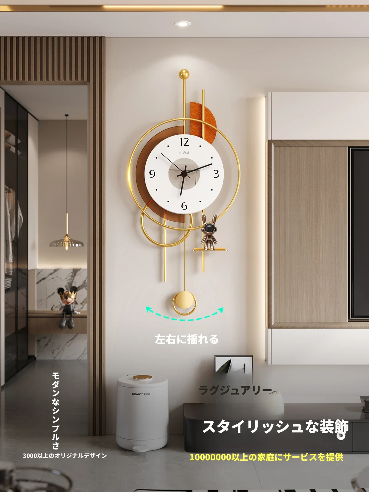 高級軽奢感の壁掛け時計|2024年新作!モダンでシンプルなデザイン、静音機能付き。リビングやダイニングにぴったりの創造的なインテリアアイテム。魅力的な時間を演出します!