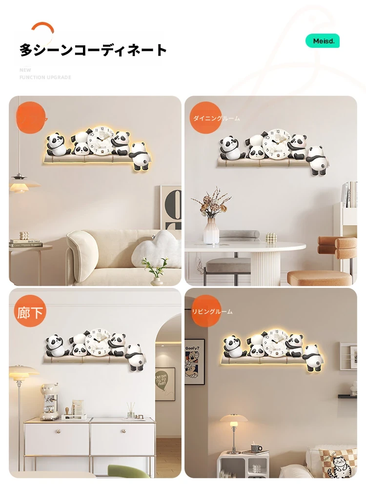 美世达パンダ掛け時計 2024年新作 高級感溢れるシンプルでスタイリッシュなデザイン リビングにぴったりな創造的な壁掛け時計 ライト付きで夜もおしゃれに演出!