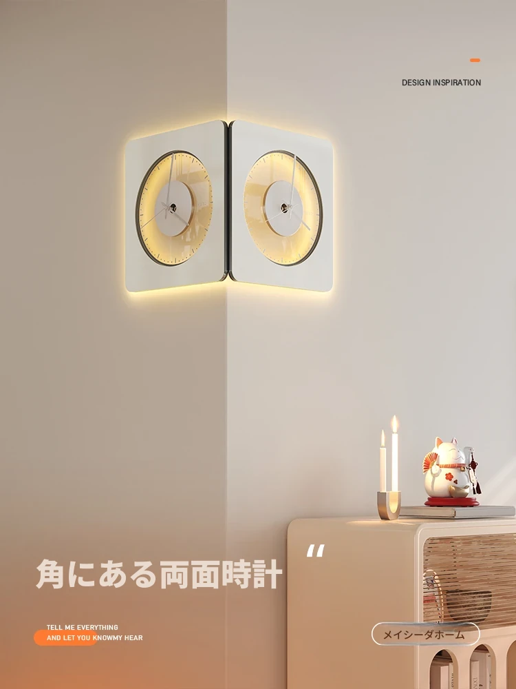 美世达モダンデザインの壁掛け時計 - 家庭用ダブルサイドクロック、リビングやダイニングに最適なクリエイティブなインテリアアクセント!角にぴったりフィットするスタイリッシュな時計です。