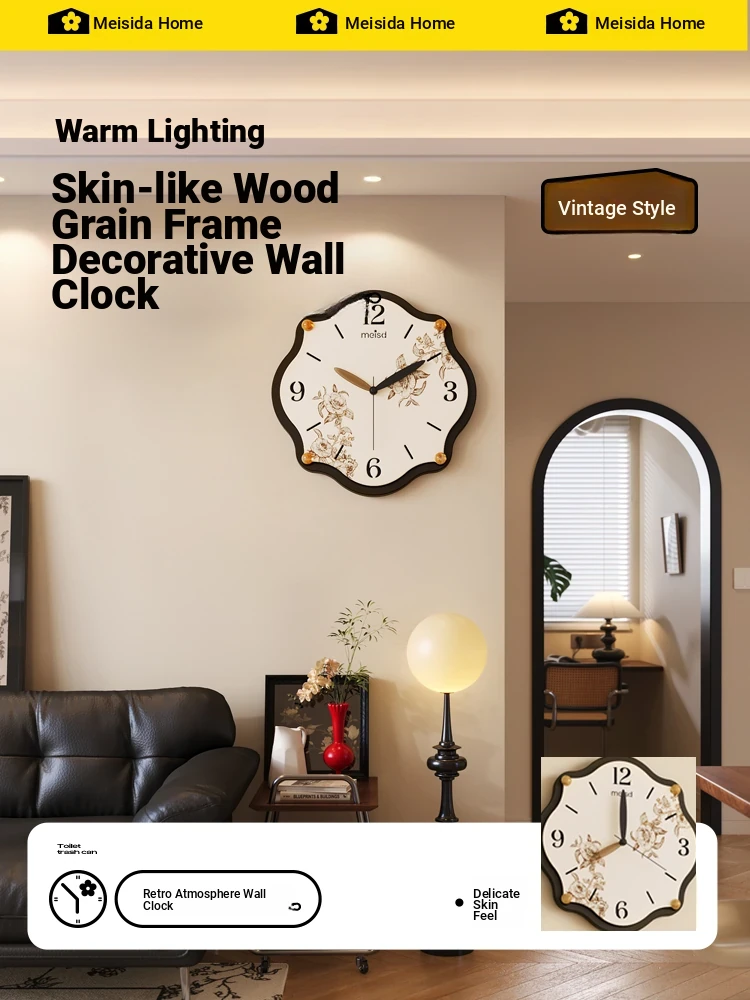 Meisida Vintage Wall Clock - Stylish & Creative 2024 New Design for Living Room, High-End Home Decor, Minimalist Wall Timepiece