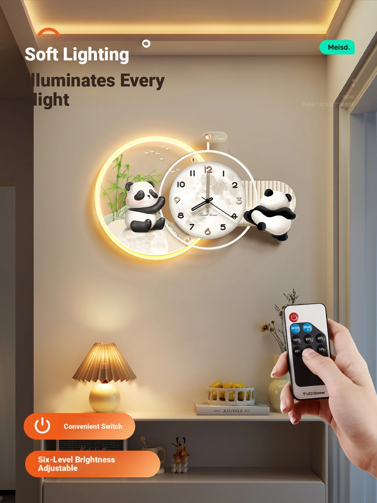 Meisida Atmosphere Panda Wall Clock - 2025 New Model, Silent Clock for Home Living and Dining Rooms, Minimalist Creative Design for Timeless Elegance