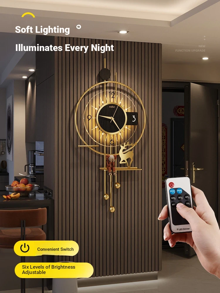 Meisida Stylish Wall Clock for Living Room - 2024 New High-End Creative Design, Modern Decorative Timepiece with Elegant Lighting for Home Use