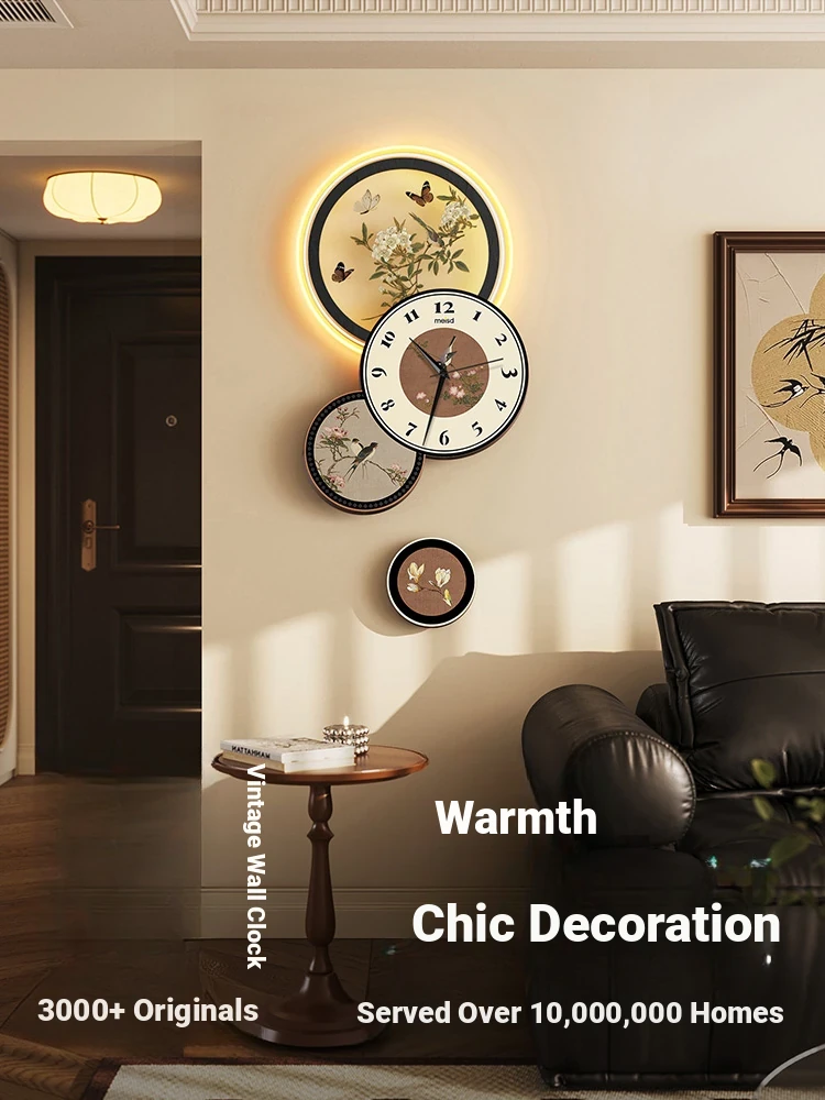 Meisida Retro Wall Clock 2025 New Model - Stylish Minimalist Decorative Clock for Living Room, Creative Large Wall Clock with Unique Design and LED Light