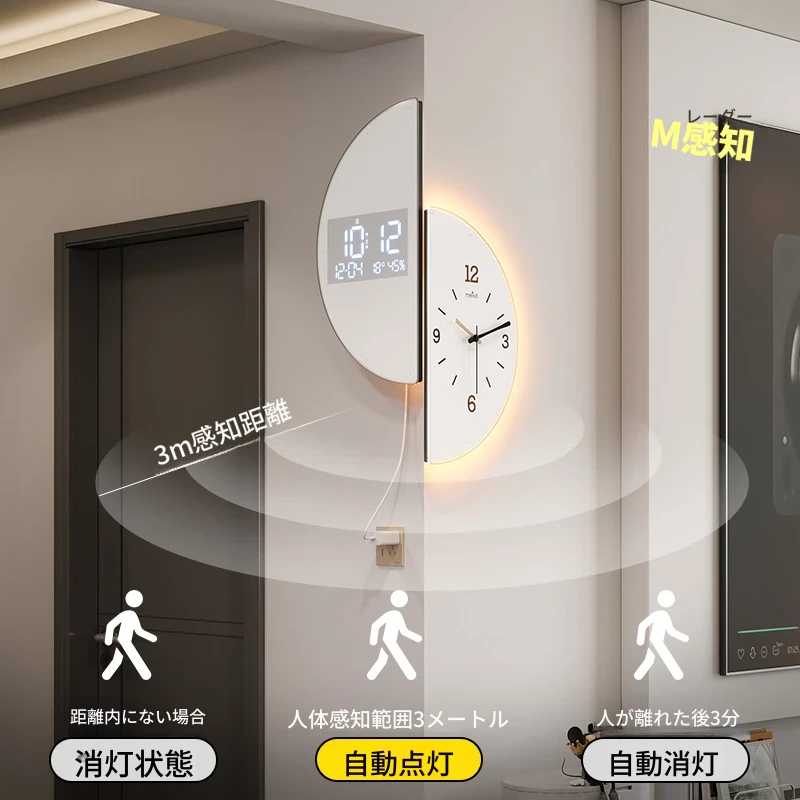 美世达2025年新款壁掛け時計!穴を開けずに簡単取り付け!シンプルでスタイリッシュなデザインの家用電子時計。リビングにぴったりの万年カレンダー機能付き!あなたの生活空間を彩ります!