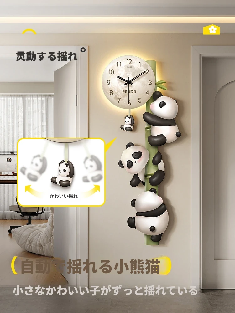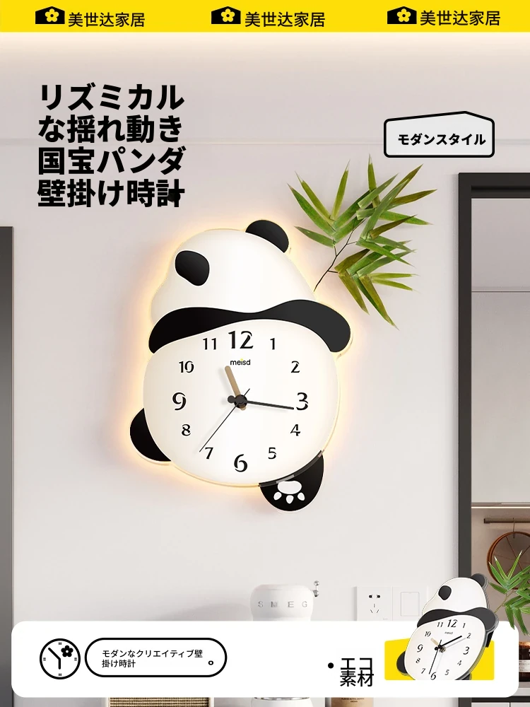 メイシーダパンダ壁掛け時計 - おしゃれなインテリアアート!新しいデザインで、リビングやダイニングの背景を魅力的に彩ります。個性的な時計で、毎日の時間を楽しく!