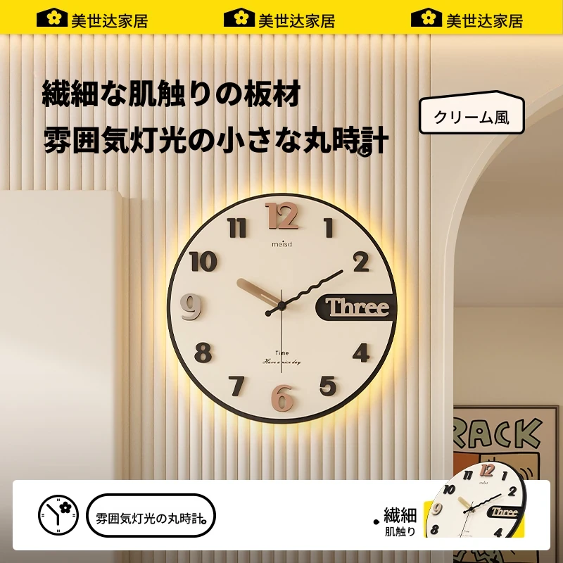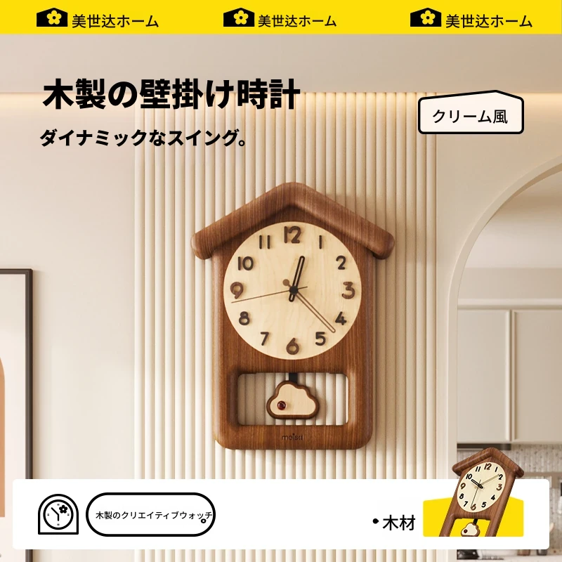 美世达リビング用無垢材製のクリーム風アート壁掛け時計2025年新作、シンプルでおしゃれなデザイン、家庭にぴったりのインテリアアイテム!
