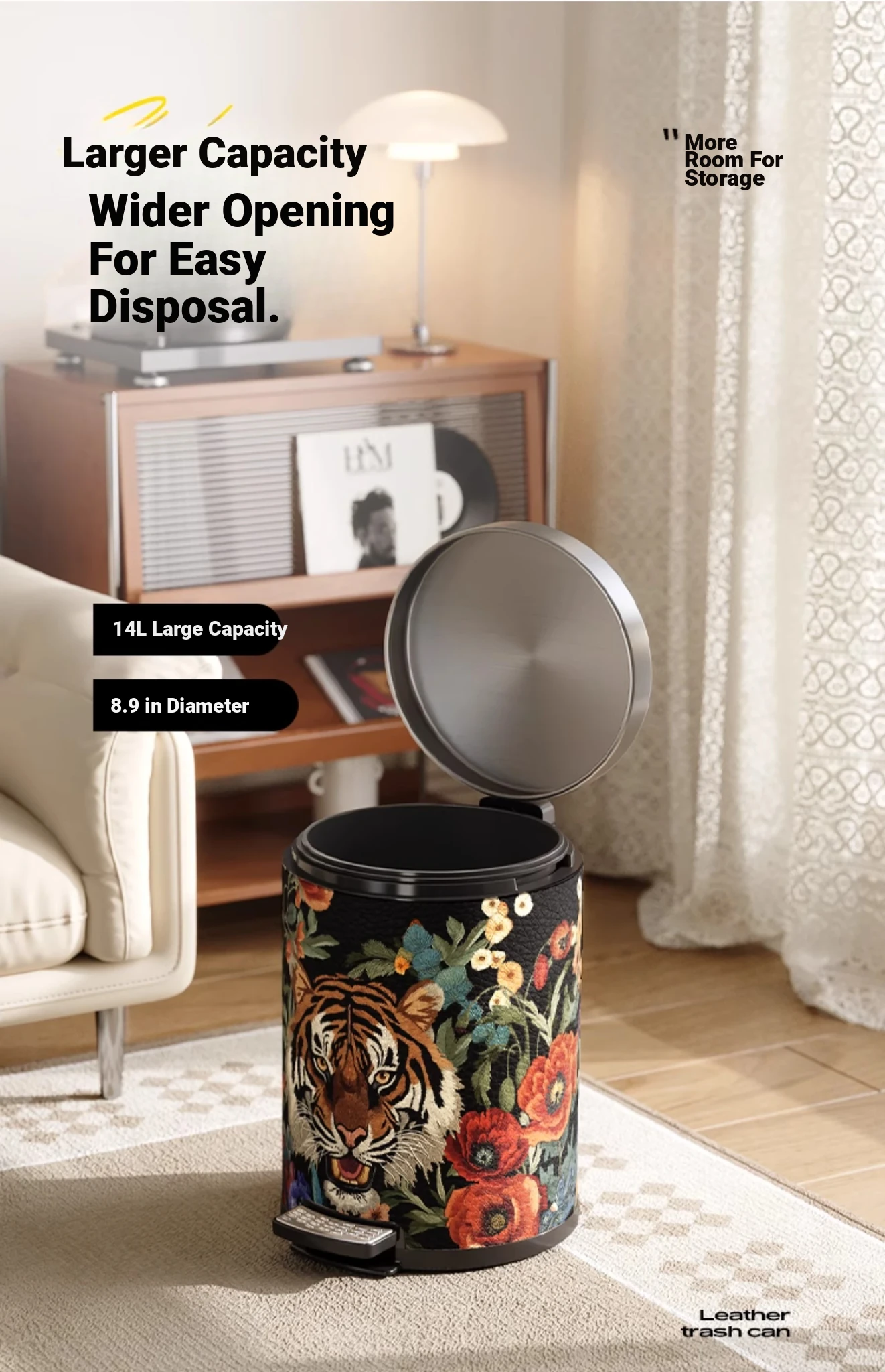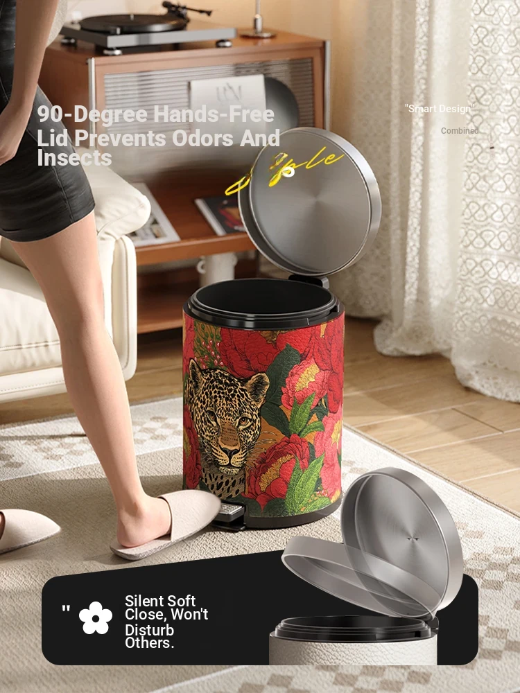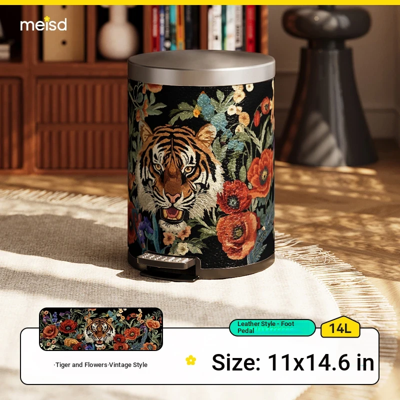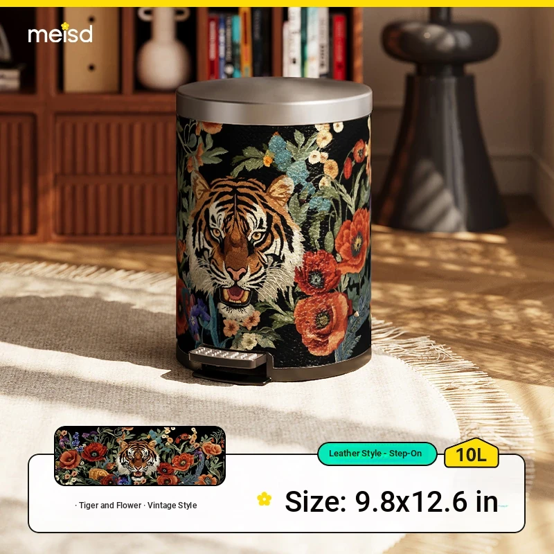 Meista Stainless Steel Trash Can - Vintage Mid-Century Design, Large Covered Waste Bin for Home, Retro Beast Style, Perfect for Living Room and Bathroom