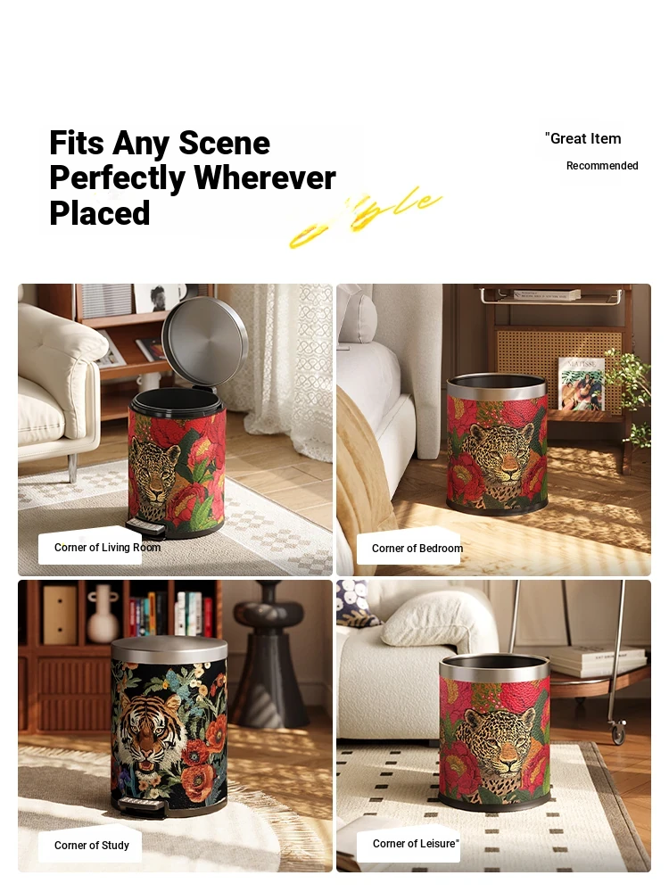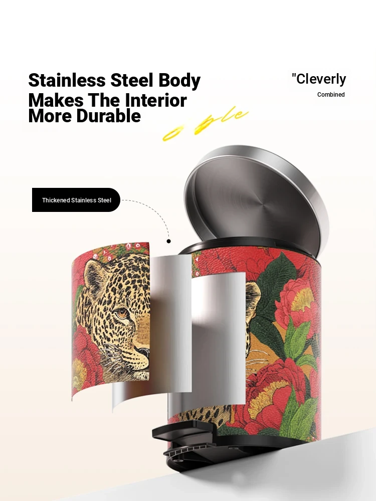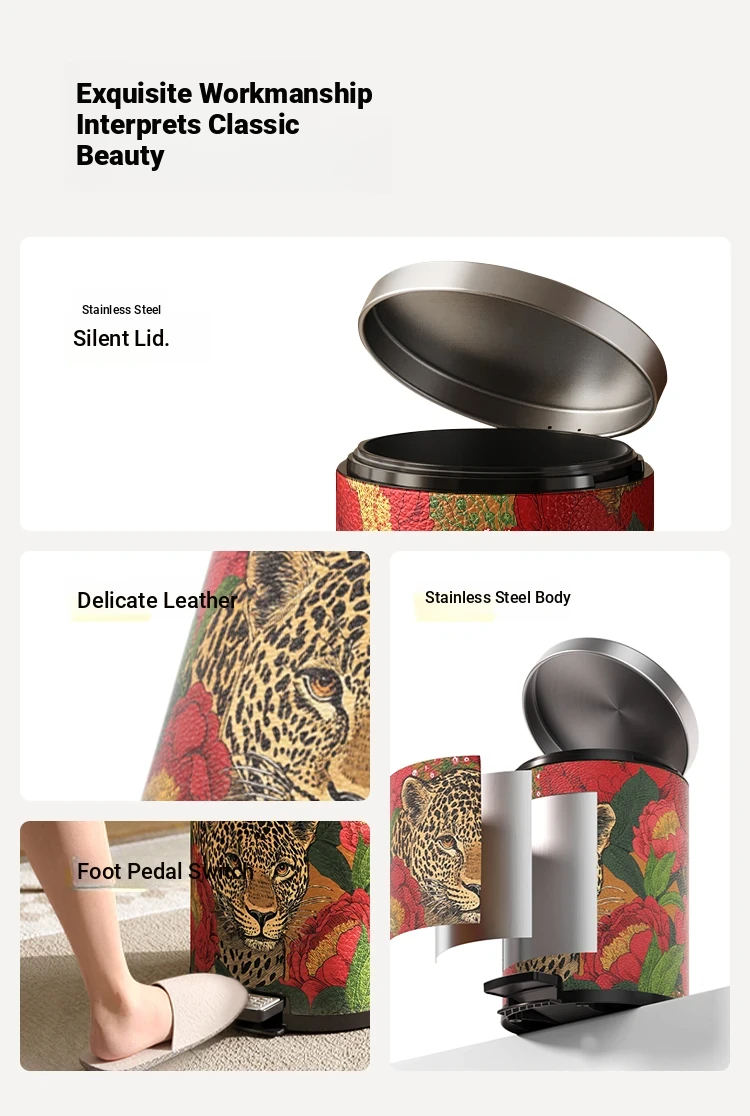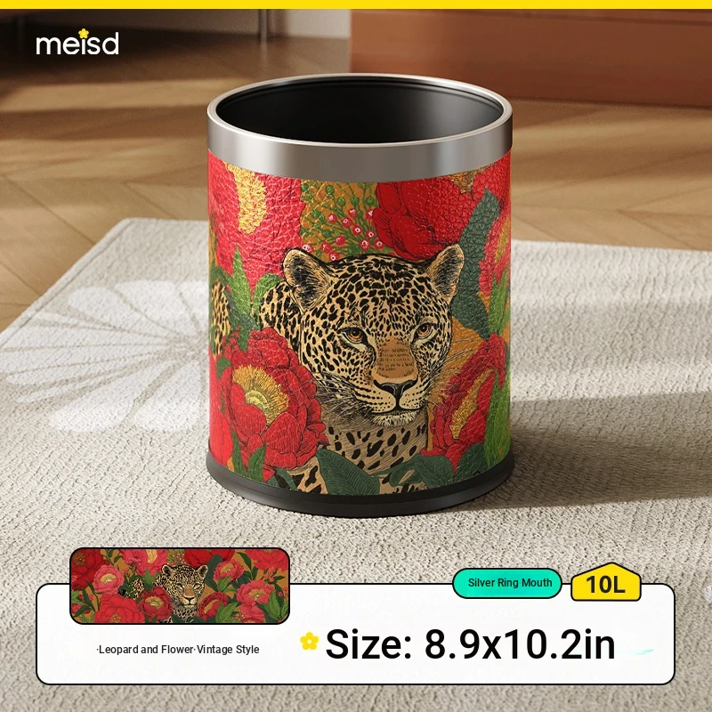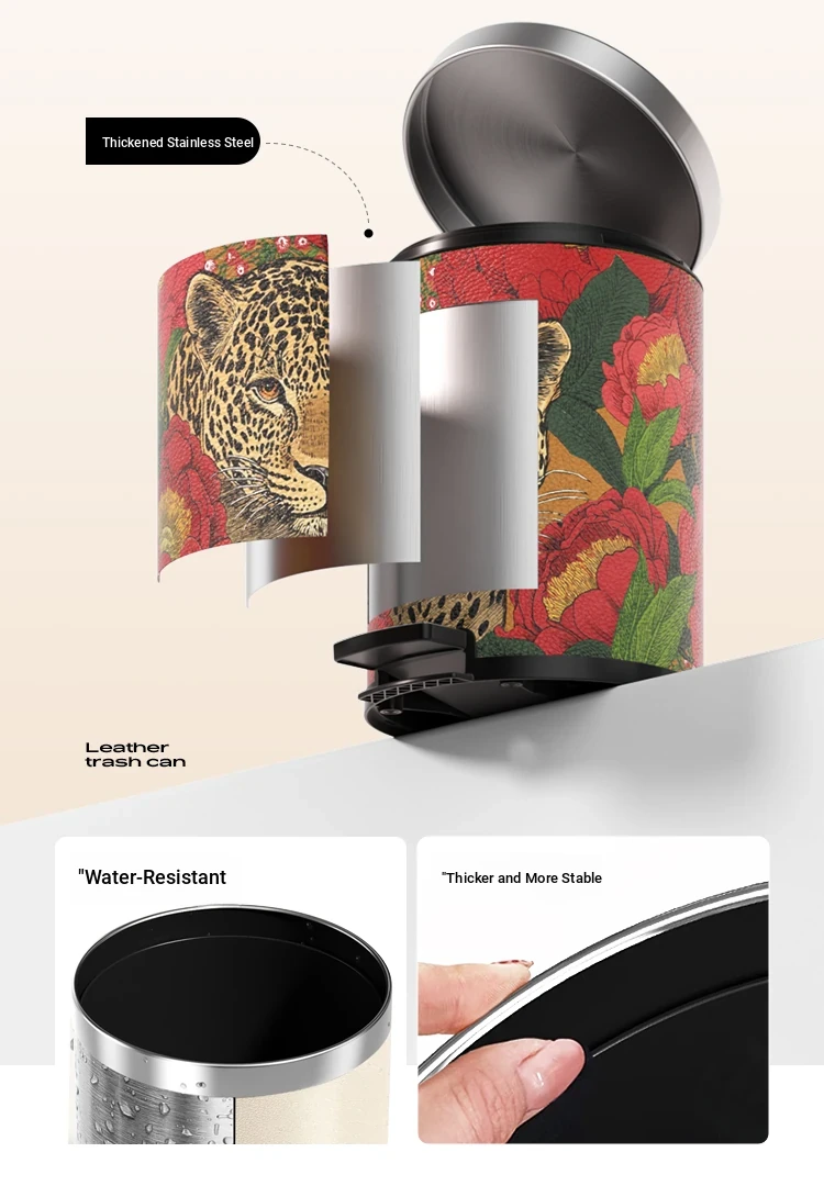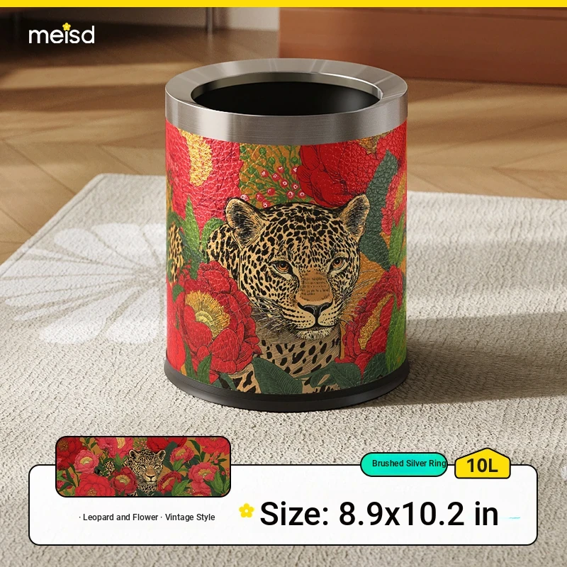 Leopard and flower-A⭐Brushed silver ring⭐Metal barrel body⭐High quality leather surface
