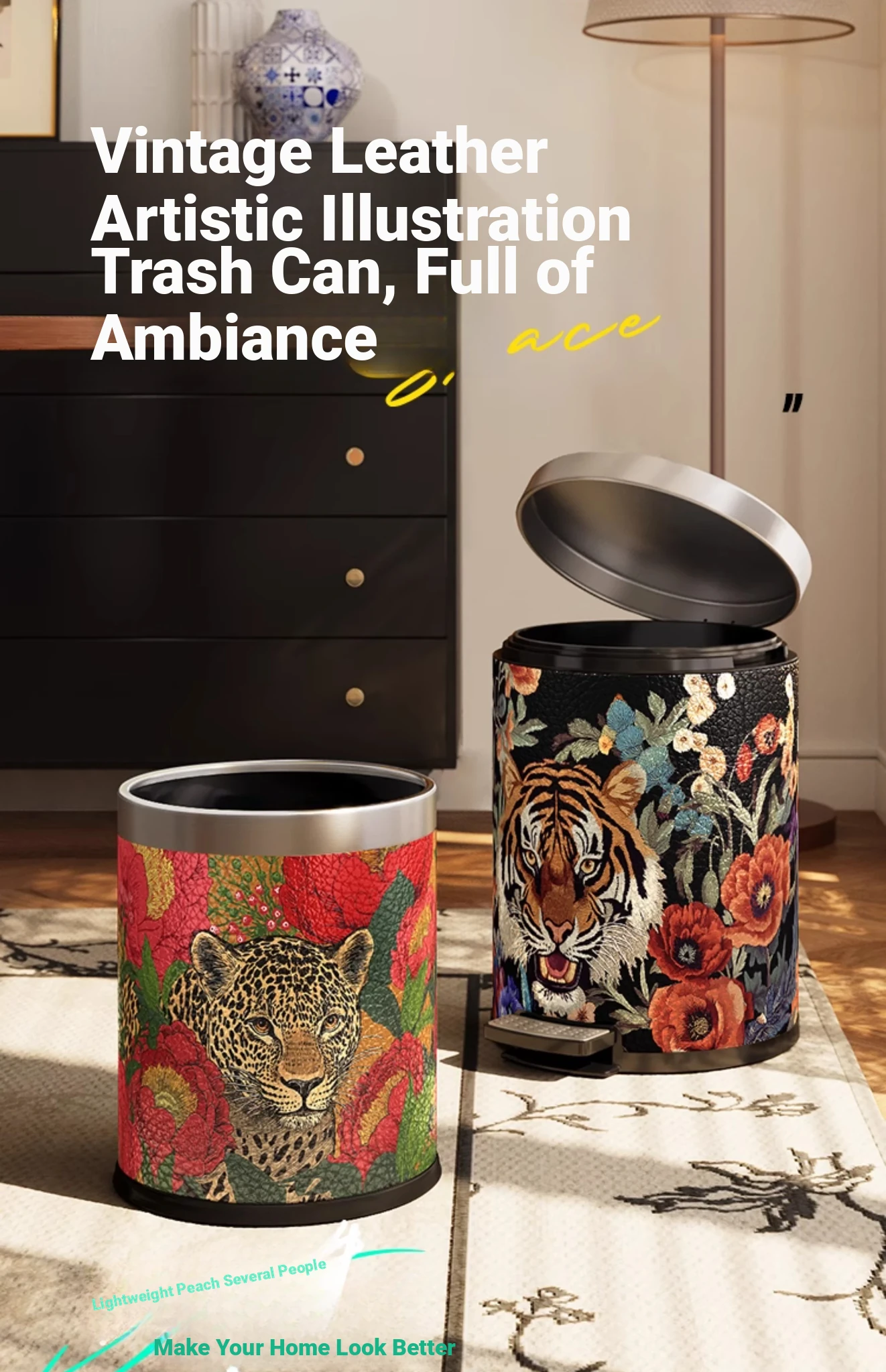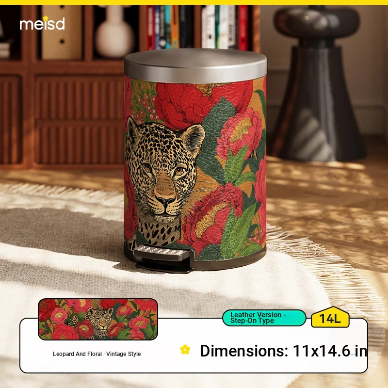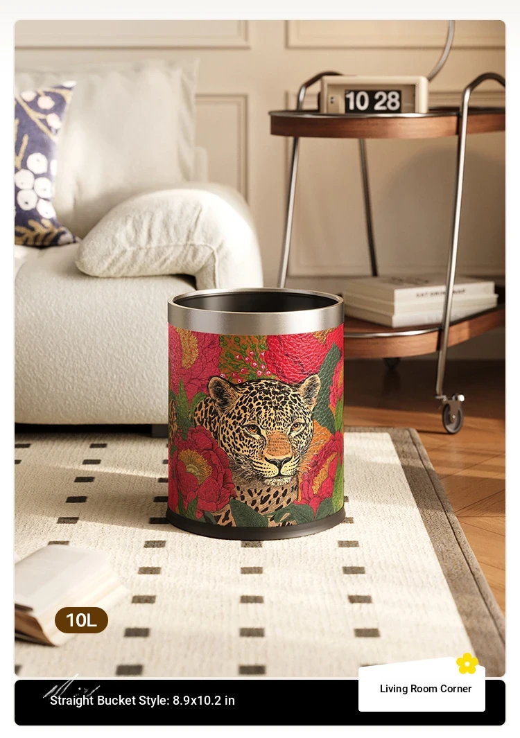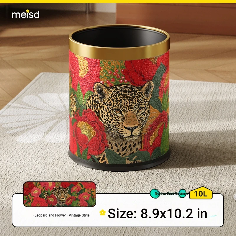 Leopard and flower-A⭐Gold ring⭐Metal barrel body⭐High quality leather surface