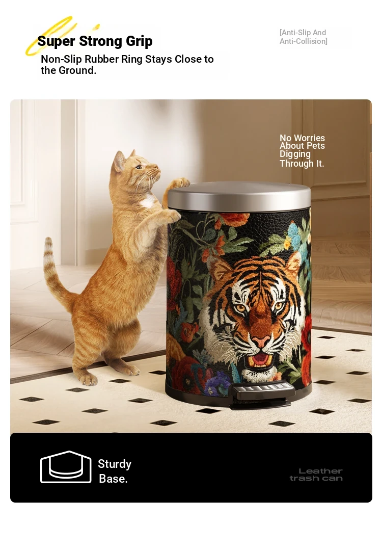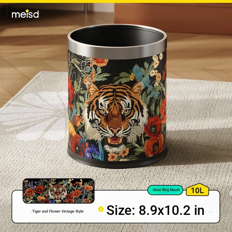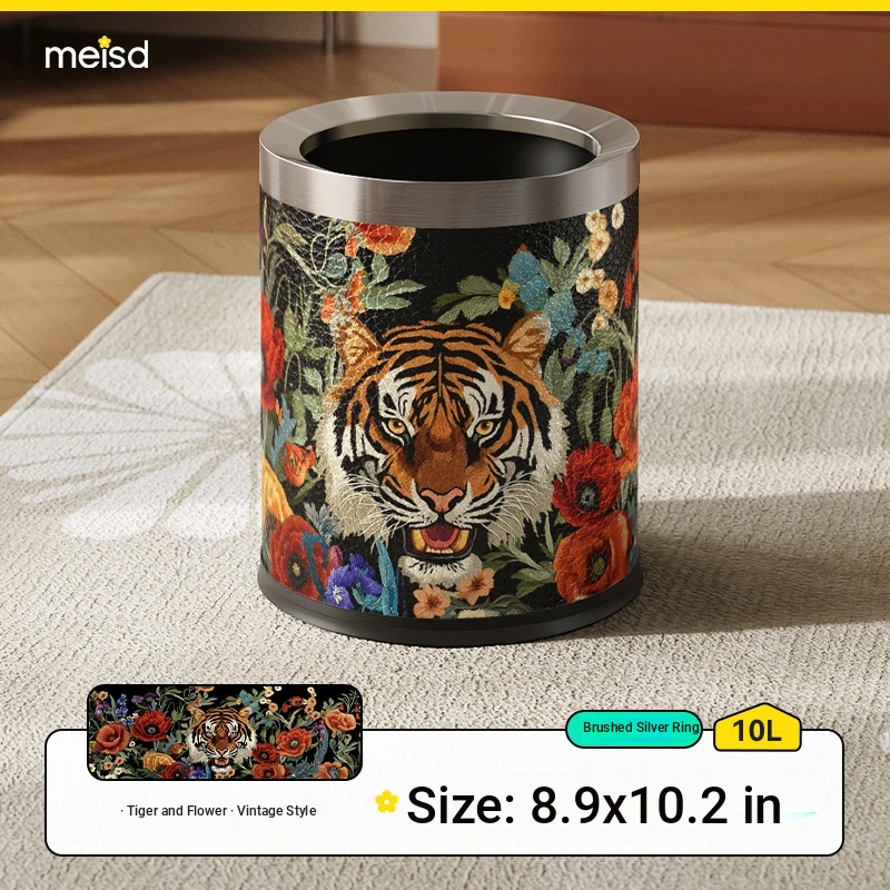 The Tiger and the flower-B⭐Silver ring style⭐Metal barrel body⭐High quality leather surface