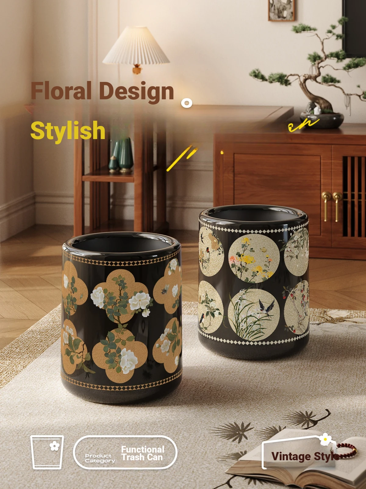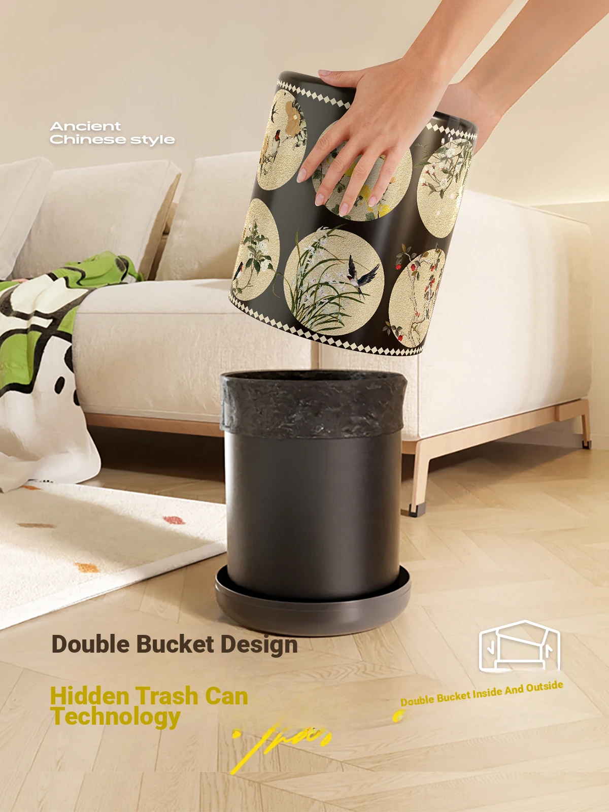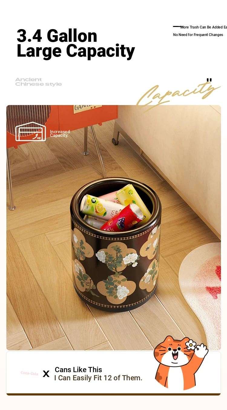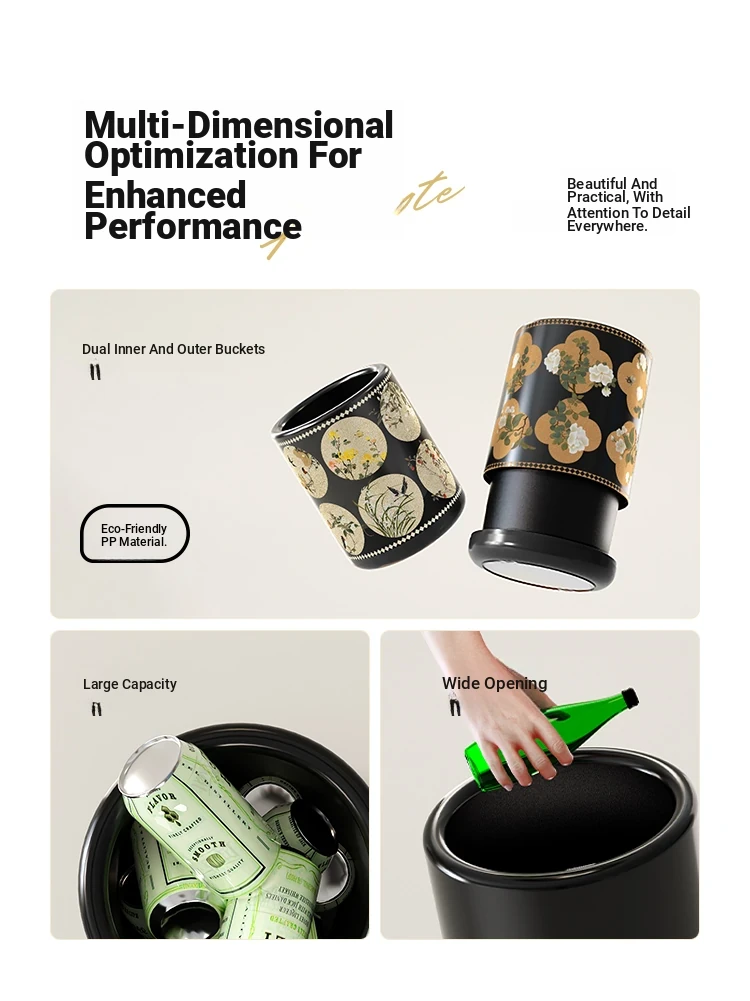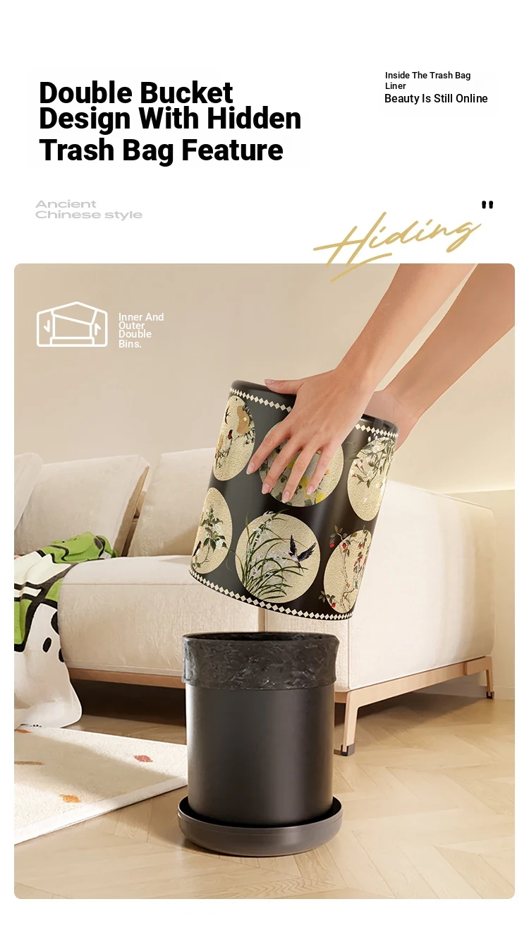 Stylish Retro Double-Layer Trash Can - Vintage Design for Home Use, Perfect for Living Room and Bedroom, Large Capacity Without Lid
